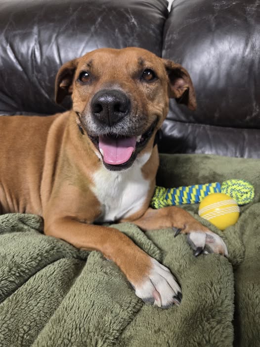 Marlee is a gentle, affectionate 7-year-old Staffy mix (25kg) who came to Dogwatch through a private surrender. Having spent her life as an outside dog, she has quickly discovered the joy of soft beds, kind hands, and being close to her people and she absolutely loves it. Marlee has become a quiet favourite with the team, a dog who truly values connection and returns affection tenfold.