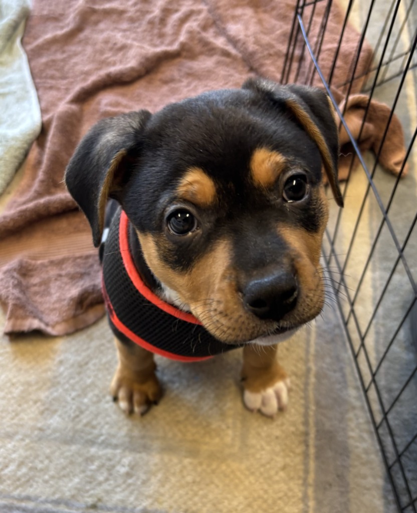 Bruno – 7-week-old mixed breed, medium to large size possibly working breed and staffy mix