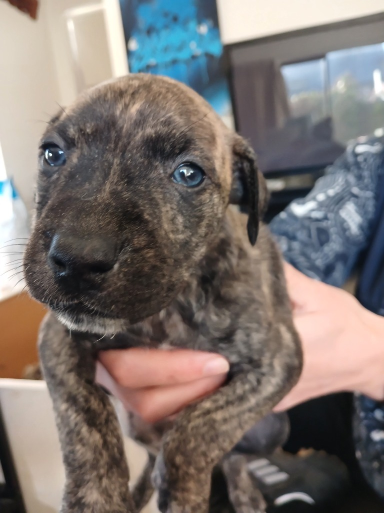 These gorgeous Whippet–Staffy cross pups are approximately six weeks old and come from a loving home. Their mum is still caring for them and they are thriving under her watchful eye. Each pup has been well socialised and is growing into a happy, healthy little character.