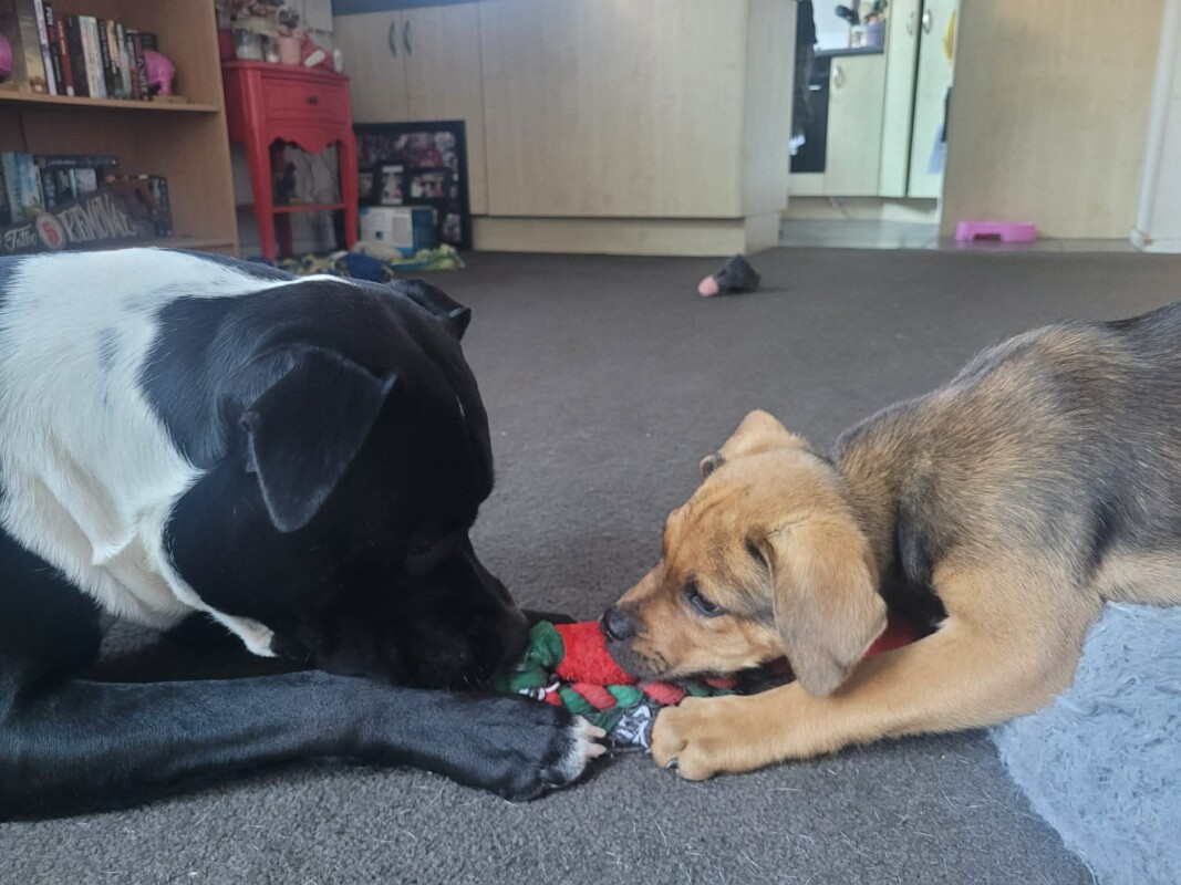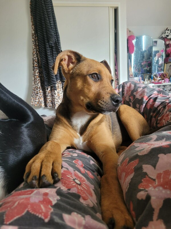One of four pups who have joined us from Timaru, Gigi is brand new to Dogwatch and settling in beautifully. These lovely pups have come from a caring family environment and are now in loving foster homes while they wait for their next step. Gigi has been living in a busy home with other dogs, kids and adults and is thriving!