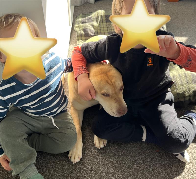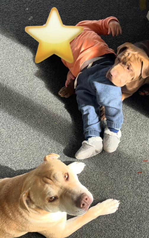 Gwen is Fern’s mum, a stunning Shar Pei–Staffy mix with a calm and affectionate nature. At around 8 years old, Gwen has matured into a steady, loving dog who bonds strongly with her people. She has been well cared for and is used to family life, making her an easy fit into a home where she will be cherished.