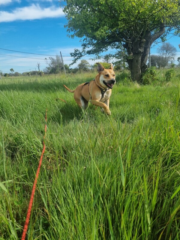 Jazz has wowed our team (and her foster dad!) with her charisma, charm, and quirky, funny personality. She’s beautifully natured, eager to please, and an absolute delight to have around. Jazz loves human company and has a super soft, loving side – she’ll happily come for cuddles, then toddle off for a snooze before coming back for a “top-up” cuddle later. She’ll keep you laughing with her antics and big, goofy heart!