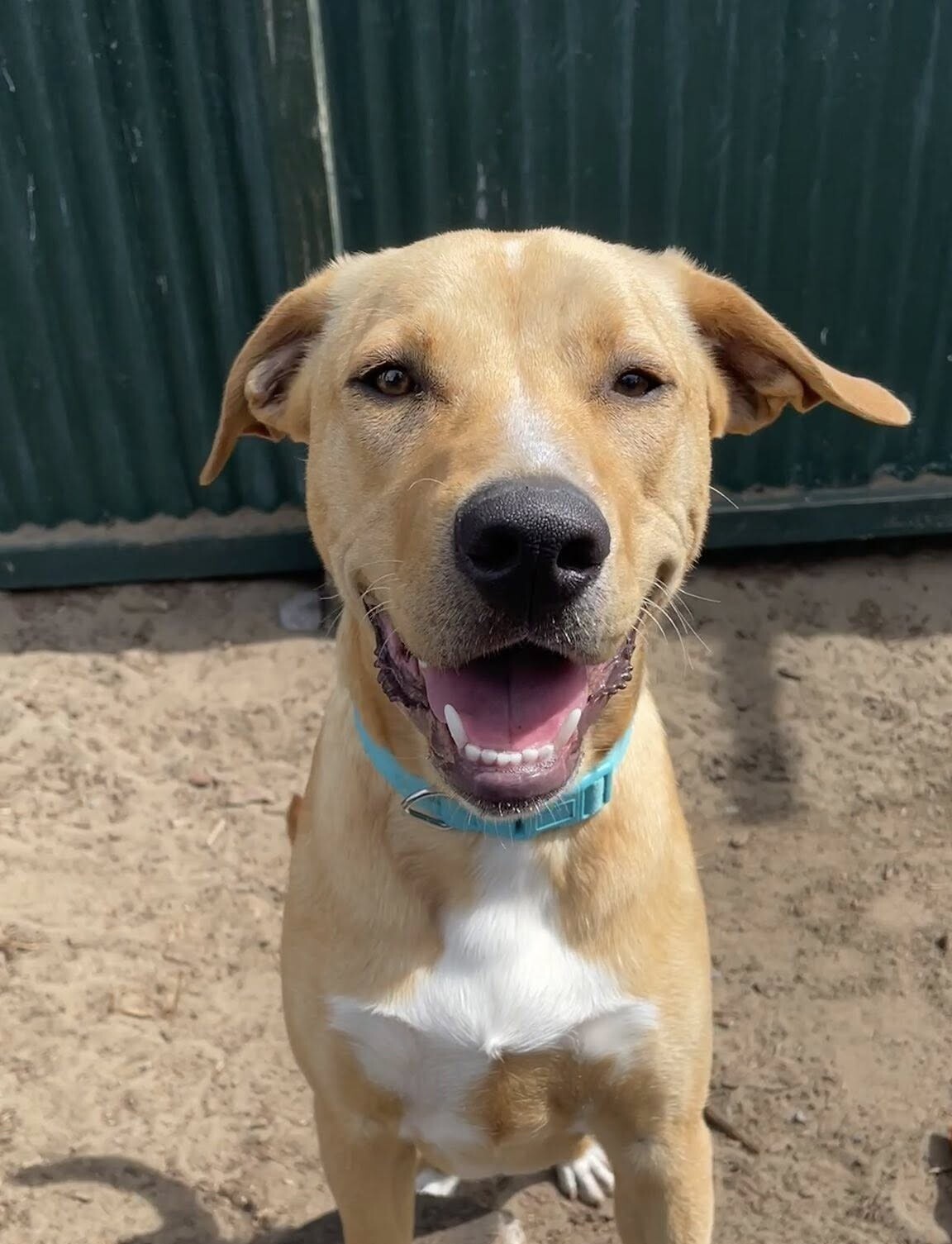Meg is desexed, vaccinated, and has started basic recall training. She hasn’t been cat tested, and her sweet nature suggests she may be best suited to a home with dog-savvy children.