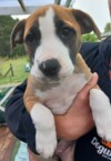 At just 6 weeks old, the Ruby litter are already showing their sweet personalities. There are 10 puppies in total – 6 females and 4 males. We believe these pups are Staffy x sharpei, and are expected to grow into medium sized dogs, around 25–28kg once fully grown.