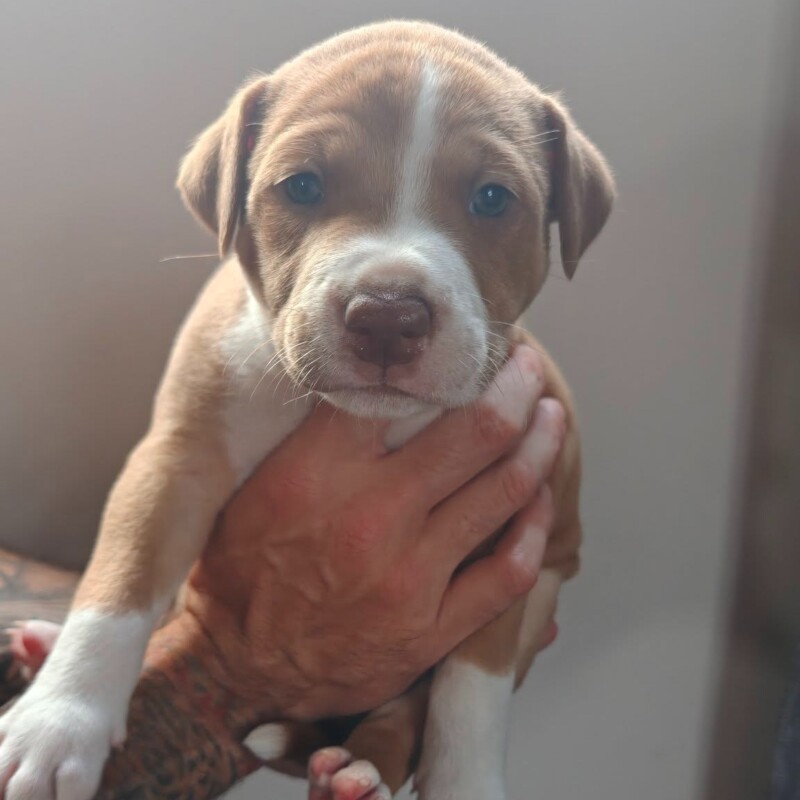At just 6 weeks old, the Ruby litter are already showing their sweet personalities. There are 10 puppies in total – 6 females and 4 males. We believe these pups are Staffy x Boxer, and are expected to grow into medium sized dogs, around 25–28kg once fully grown.