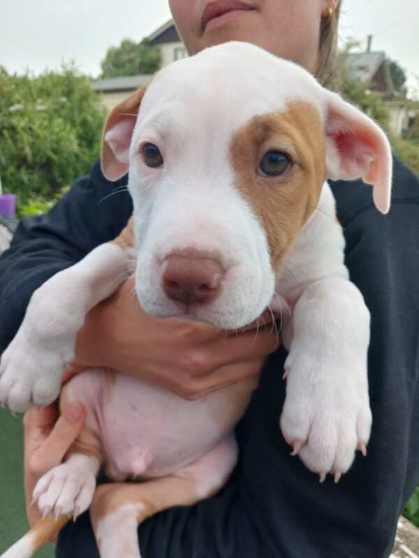 At just 6 weeks old, the Ruby litter are already showing their sweet personalities. There are 10 puppies in total – 6 females and 4 males. We believe these pups are Staffy x sharpei, and are expected to grow into medium sized dogs, around 25–28kg once fully grown.