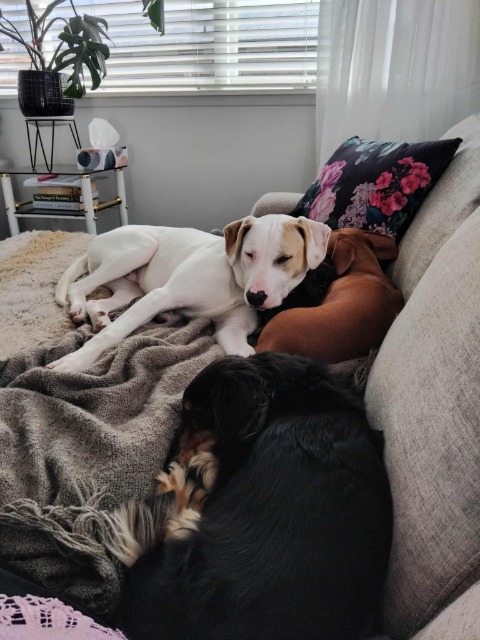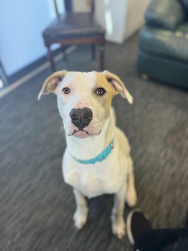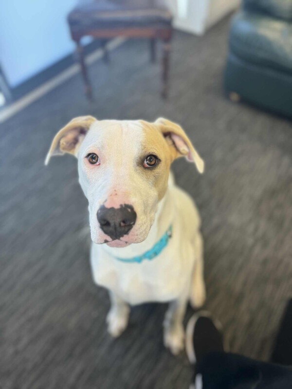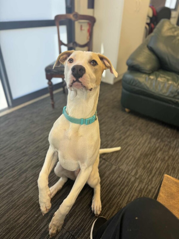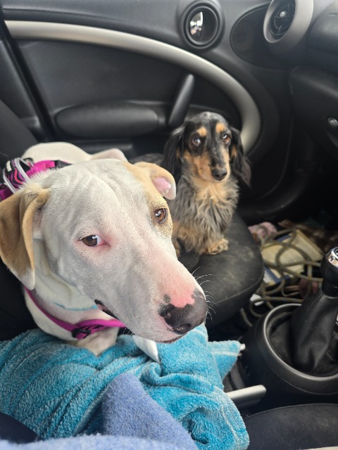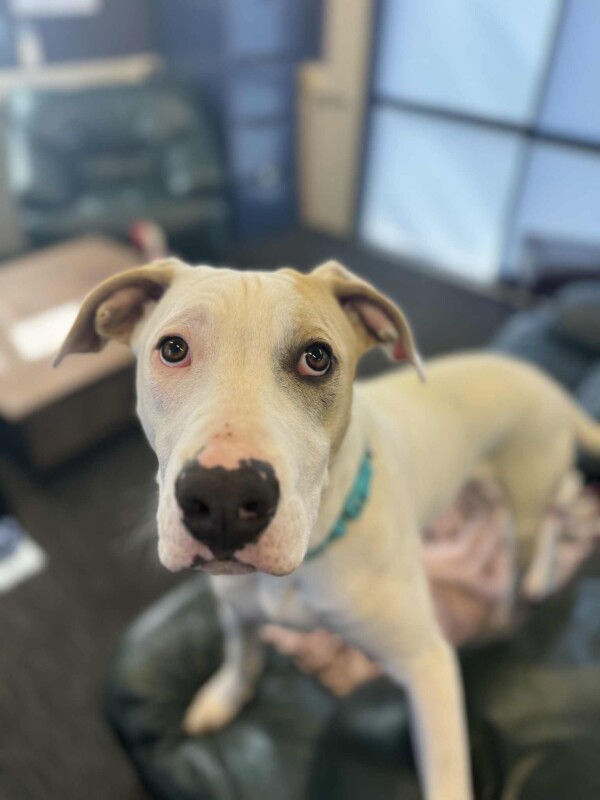 Snow is a 8-month-old Staffy mix with a gentle heart and so much love to give. This boy is all about snuggles, zoomies, and stealing your warm spot on the couch – he’s a true sweetheart who deserves the perfect family.