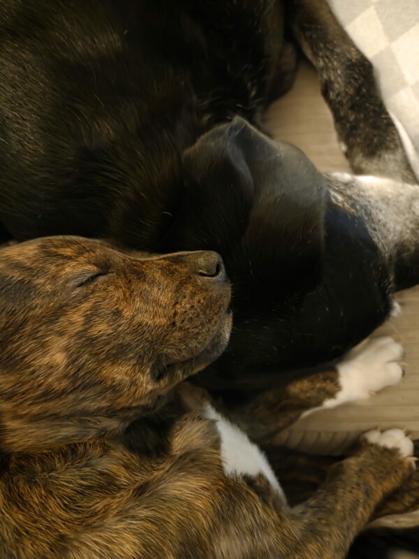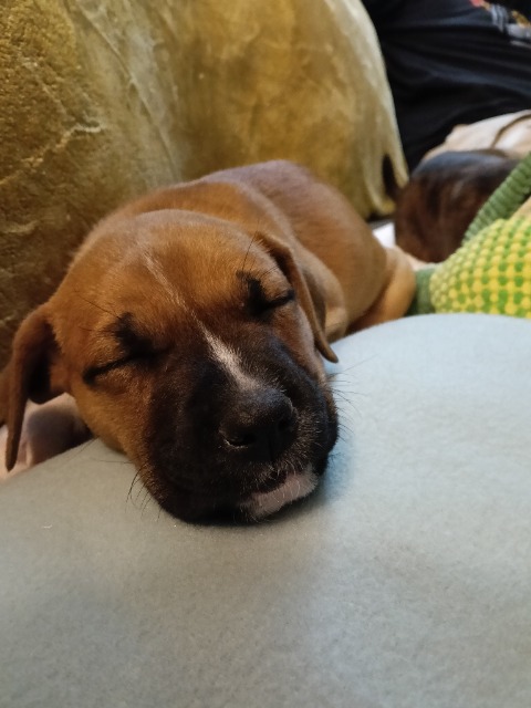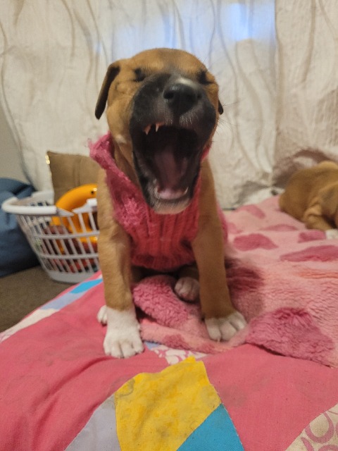 Mum appears to be a Staffy mix, while dad is unknown, so we expect these pups to grow into medium to large-sized dogs (though this can’t be guaranteed). What we can guarantee is a whole lot of personality, love, and chaos in the cutest possible package.