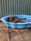 Talulla enjoys the water and, once she knows you, she loves being close to her people. At around 35 kgs, she will suit a home that can confidently manage a medium to large dog and continue her training and confidence building.